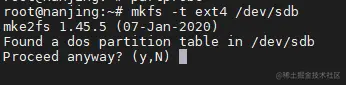 mkfs -t ext4 /dev/sdb