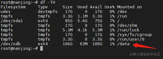在挂载前,我先看下数据盘到底有没有被挂载,执行以下命令: