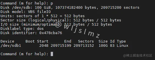 Disk /dev/sdb: 100 GiB, 107374182400 bytes, 209715200 sectors