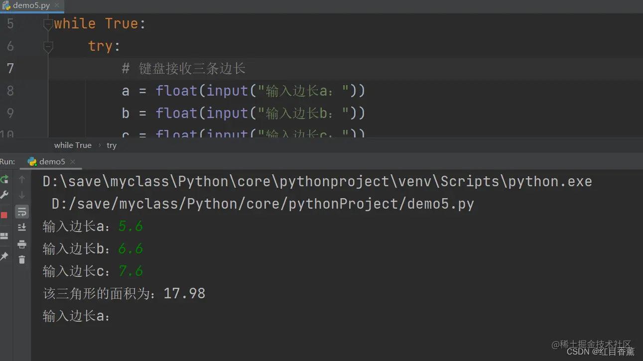 我们使用Python来实现一下海伦公式: