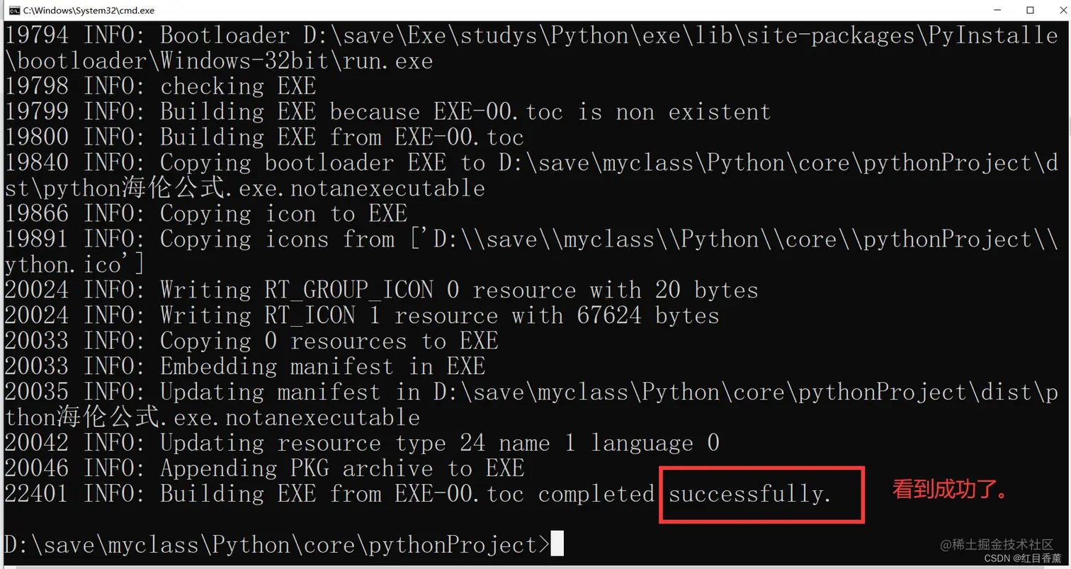 pyinstaller -F -p D:\save\Exe\studys\Python\exe\Lib -i D:\save\myclass\Python\core\pythonProject\python.ico demo5.py -n "python海伦公式"