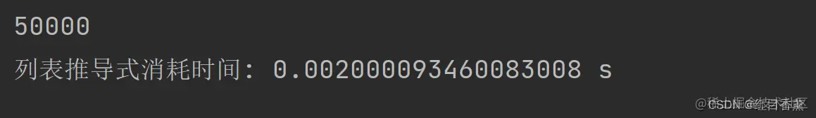 在这种计算的方式下,我们能看到列表推导式的计算优势,计算量越大效果越明显。