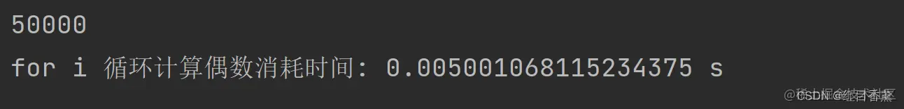 print("for i 循环计算偶数消耗时间:", (endTime - startTime), "s")
