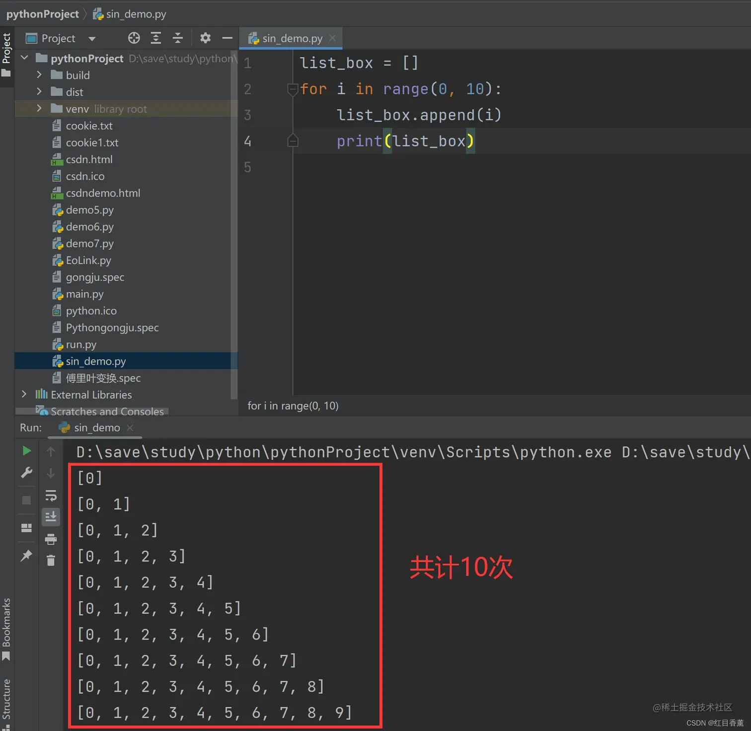 我们使用一个列表的盒子来看看我们累计的过程。