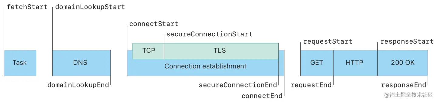 URLSessionTaskMetrics中提供了丰富的性能数据,在下方提供了对应的结构体信息