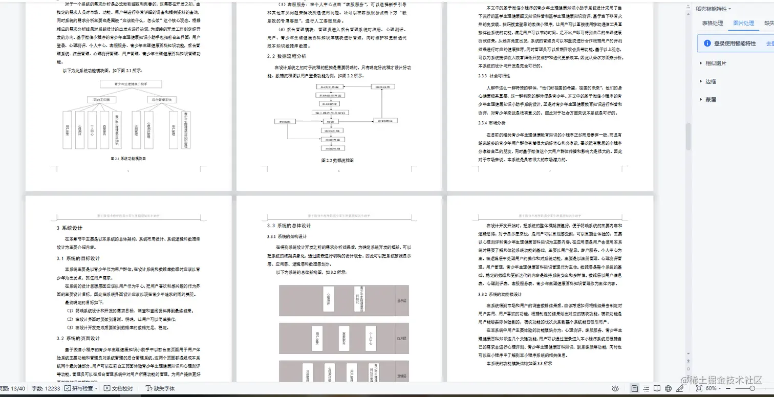 我们进入21世纪科技和人文的发展让我们对身心健康的意识逐渐加强了,人们愈来愈注重自己的身体和心理的健康。而在人群中这么一群特殊的群体,“他们时祖国的希望,祖国的未来”,他们的身心健康极其重要,这一群特殊的群体便是青少年。正如梁启超先生所说:“少年智则国智,少年富则国富,少年强则国强,少年进步则国进步”。很显然青少年的健康成长对我们赖以生存的社会环境尤其重要。因此我们要加强重视对青少年生理健康的意识,为了让我们的未来社会环境能够越来越好。青少年正处于一个人高速成长的时期,这个时期也是人的一生塑造其素质良好的身体、正确的人生价值和世界观的最重要时候,所以呵护青少年的生理健康可以让其受益一生。 伴随现代文化的发展,出现了很多通过测试、描述等方式来推出人们生理、心理健康的流行方式,同时微信小程序这种不需要安装程序,基于微信平台的一种新的开放式应用可以让用户更加便捷的体验功能,其让通过“扫码”、“搜索”等方式便可让用户实现“触手可及”的梦想。因此微信小程序也是近些年热度很高的高新科技工具。如果基于微信小程序开发,加以现在流行的问卷测试方式来推测青少年的生理健康,那么这是一个既可以让青少年用户群体可以“足不出户”就能便捷查询自己的心理健康状态,又可以在微信这个几乎“人手一个”的大规模用户平台上实现多用户推广使用。基于微信小程序的开发利用了微信开发者工具、数据库应用、网络浏览器技术等一系列技术与工具。用户在使用基于微信小程序的青少年生理健康知识小助手时,可以直接在用户手机的微信客户端进行“搜索”、“扫码”等多种方式来体验其功能,本程序的前端记录用户填写的相关问卷测试内容和数据库存储用户数据及其相关信息,在程序后台读取数据库内容计算用户填写内容的结果再通关前后端连接呈现给用户结果,让用户了解自己的生理健康情况。