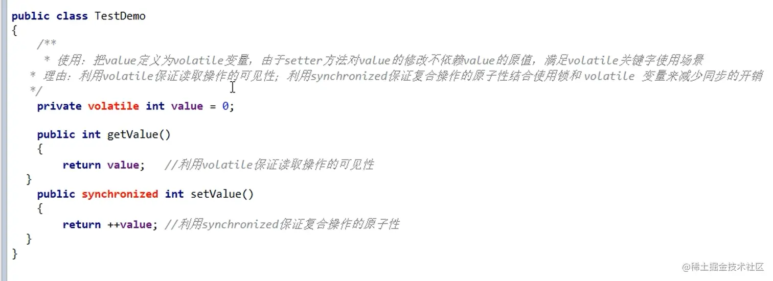 * 理由:利用volatile保证读取操作的可见性;利用synchronized保证复合操作的原子性