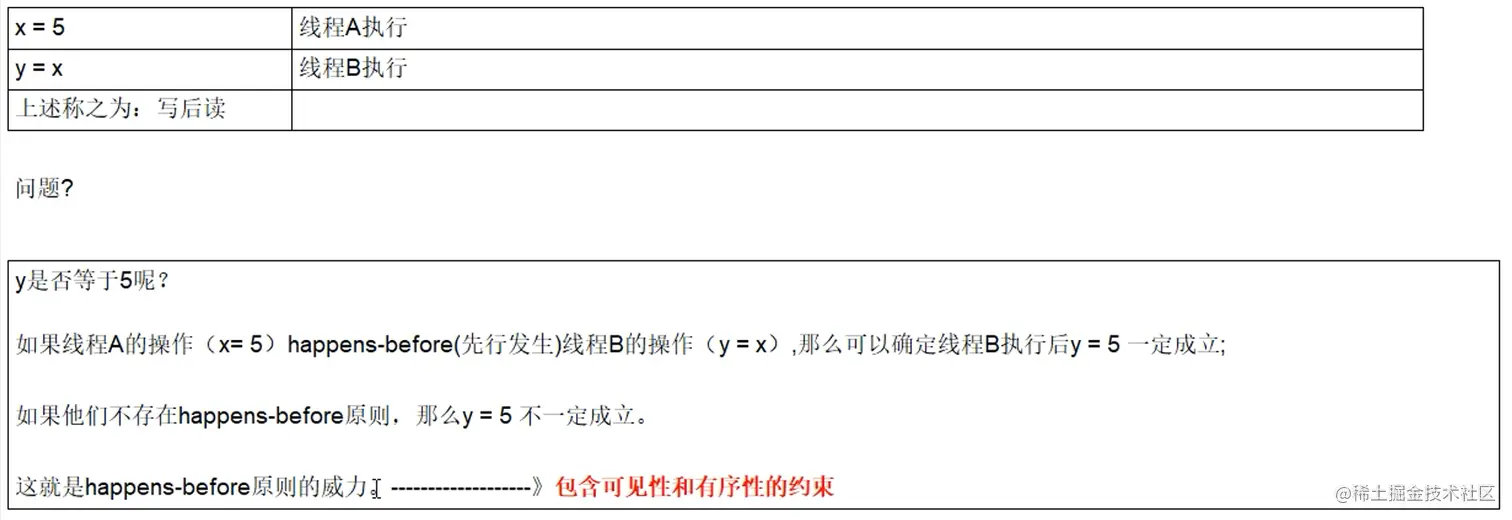 4、那为了解决这三大问题,是不是我们都要通过加锁或 volatile 等方式解决呢?答案不是的,JMM 给我们提供了 happens-before 原则来辅助我们保证程序的原子性、可见性、有序性问题,它能够判断数据是否存在竞争、线程是否安全的依据。