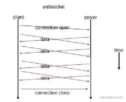 客户端和服务器只需要完成一次握手,两者之间就可以创建持久性的连接,并进行双向数据传输