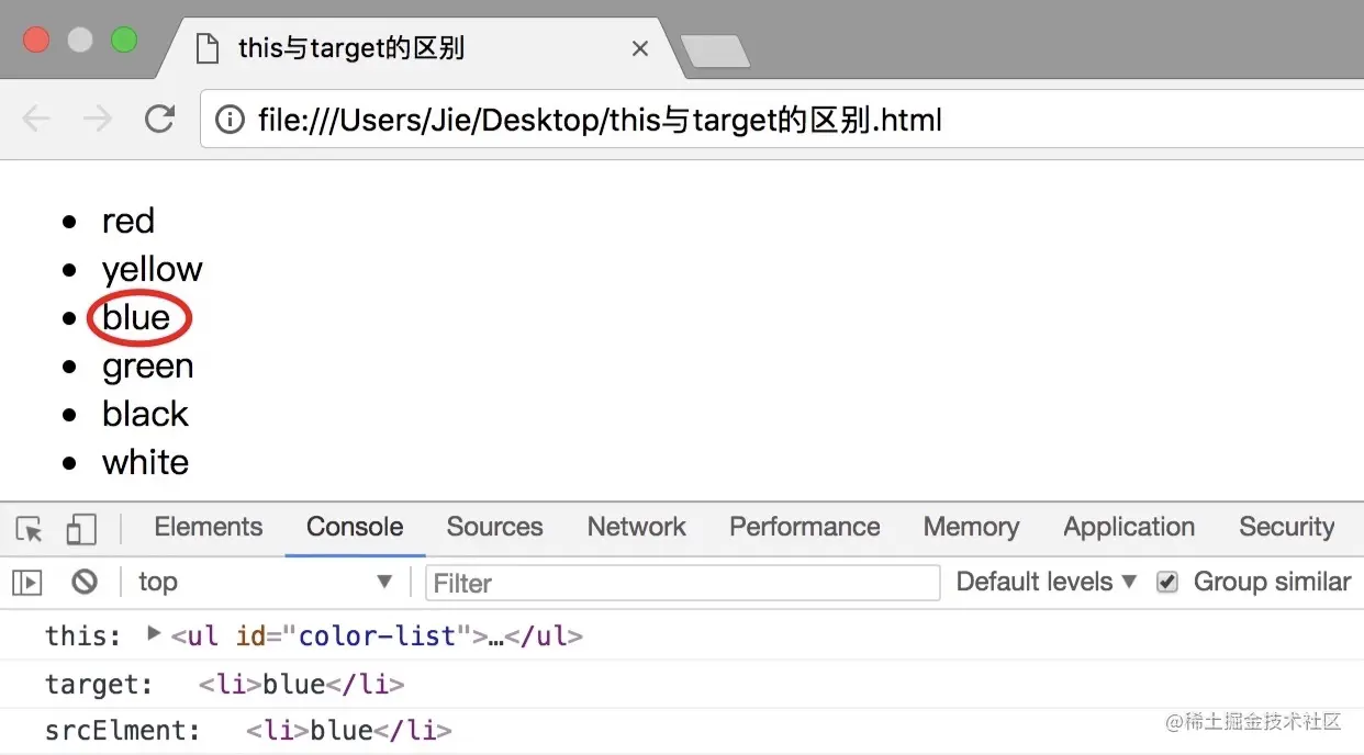 这个地方一定要注意它和 target 的区别,target 是指向触发事件的元素。