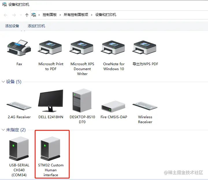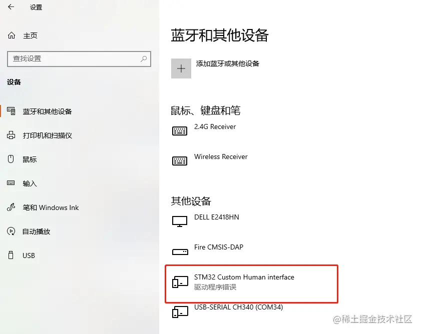 编译工程,下载到板子上,插上USB线连接到电脑上,识别出为未指定设备。