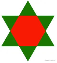 - 背景为白色,正六边形和三角形的填充颜色分别为红色、绿色;