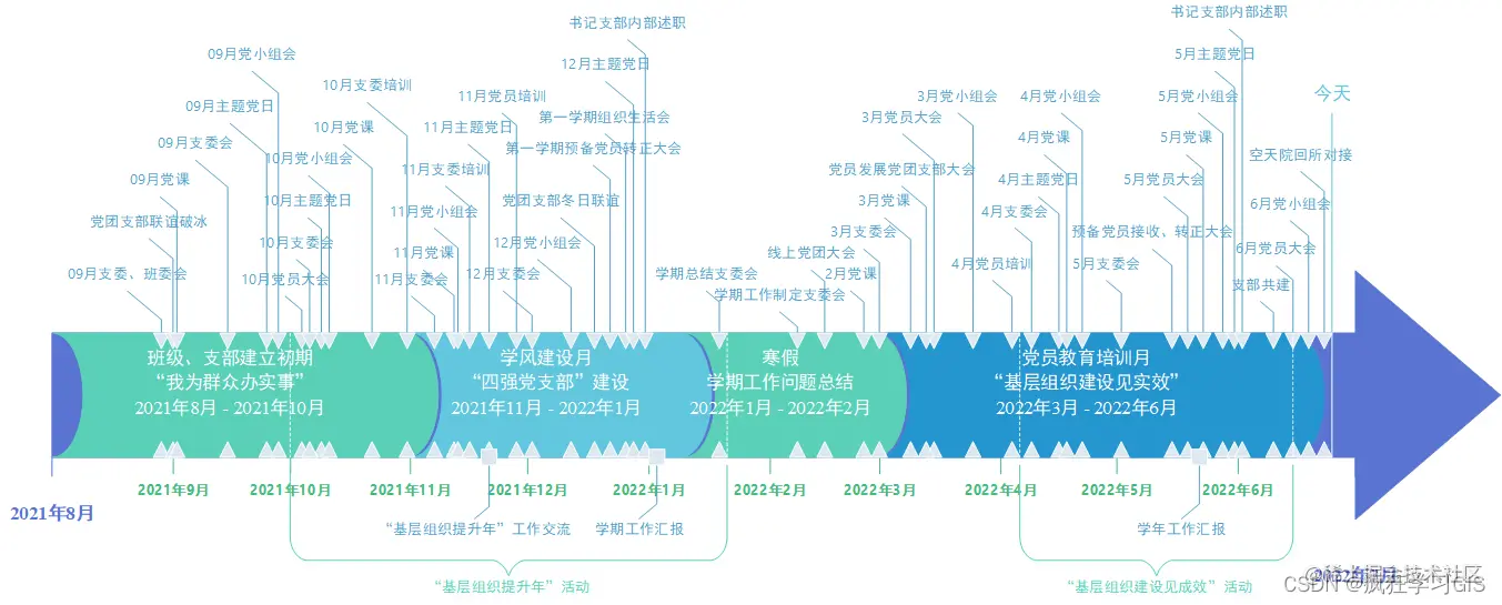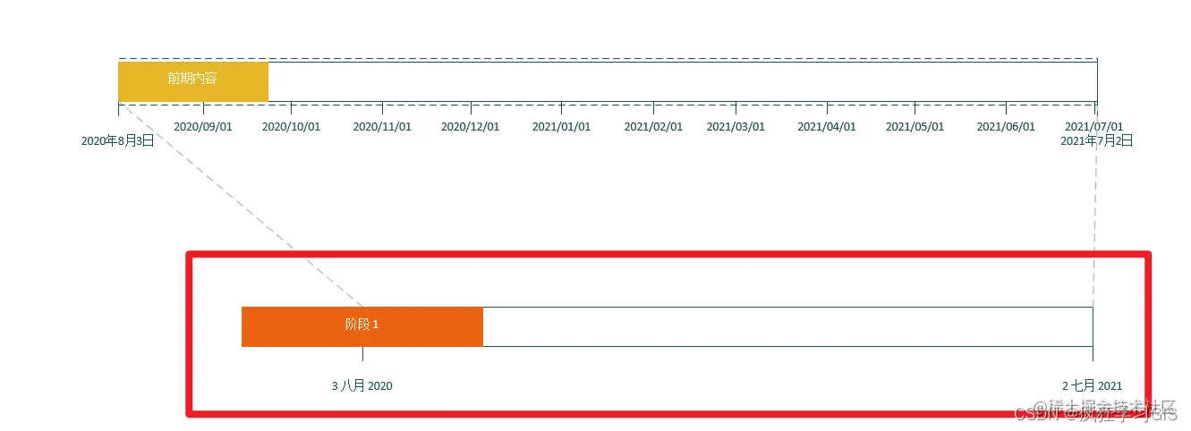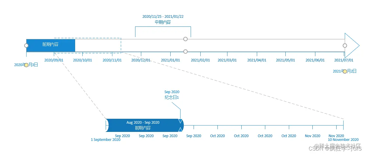 在很多学习、工作场合中,我们往往需要绘制如下所示的一些带有具体时间进度的日程安排、工作流程、项目进展等可视化图表。