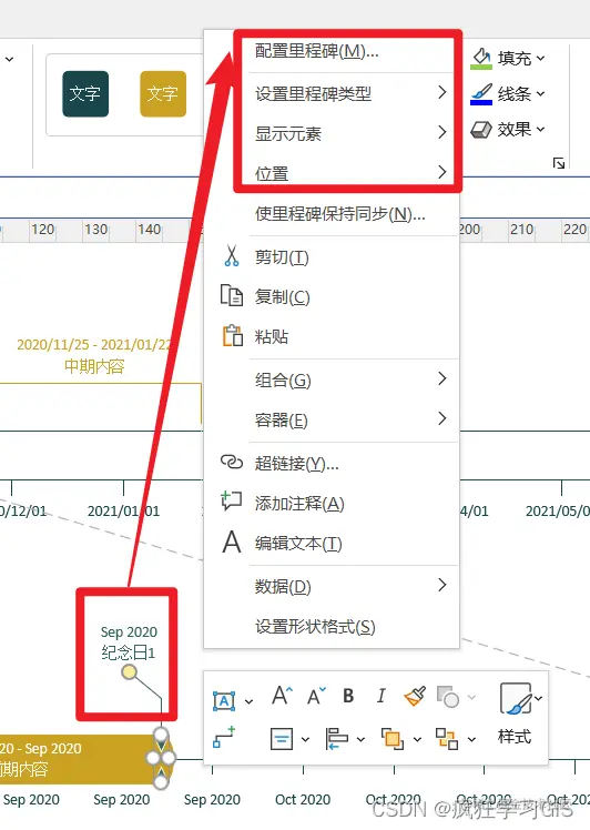 此外,在里程碑元素上方右键,同样可以进行各项设置。