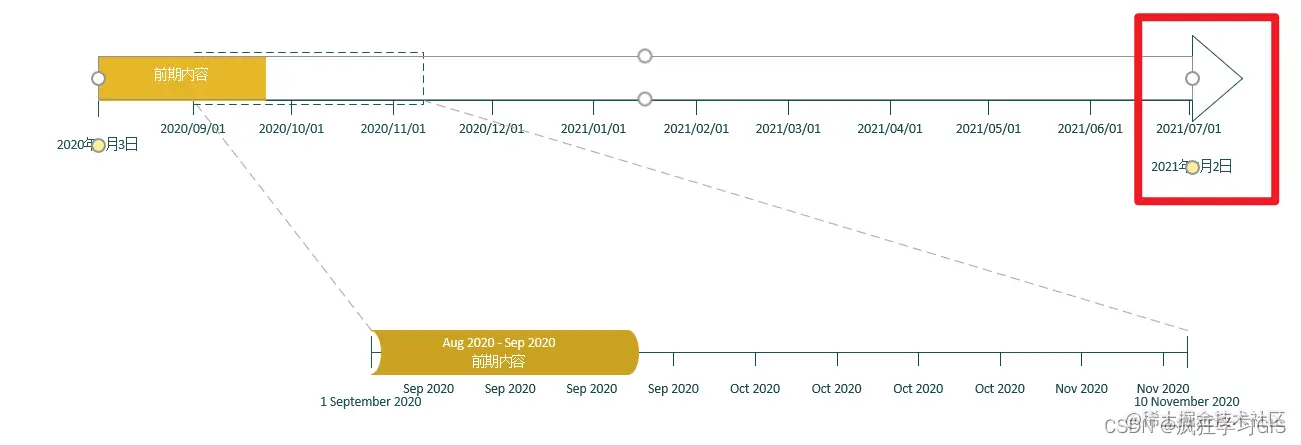 此外,时间间隔也可以设置不同的类型。如下图所示,我们将原本嵌入在时间轴内部的时间间隔变成了用方括号绘制在时间轴外部的时间间隔。