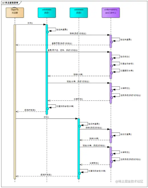 sso认证中心校验令牌是否有效sso认证中心校验令牌,返回有效,注册系统1。系统1使用该令牌创建与用户的会话,称为局部会话,返回受保护资源 -