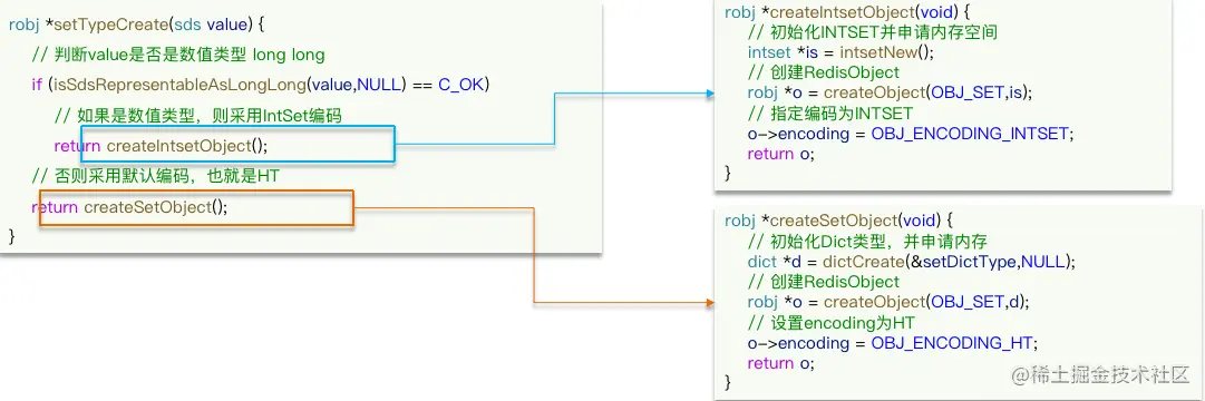 - 当存储的所有数据都是整数,并且元素数量不超过set-max-intset-entries时,Set会采用intSet编码,已节省内存