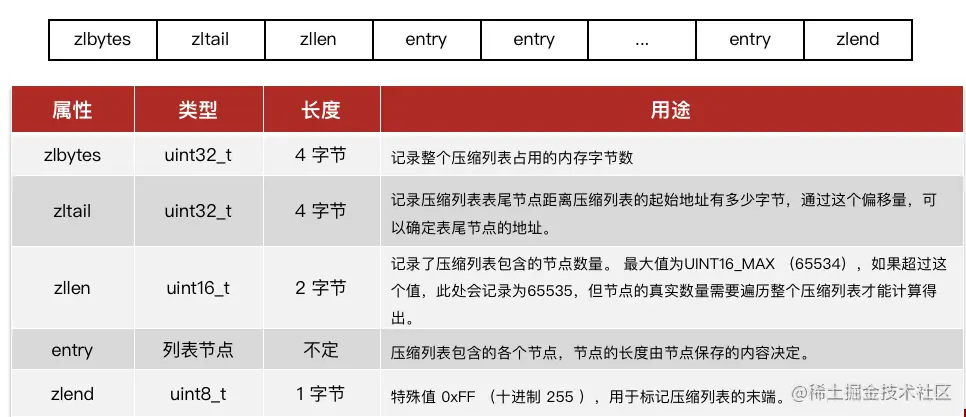 ZipList中所有存储长度的数值均采用小端字节序,即低位字节在前,高位字节在后。例如:数值0x1234,采用小端字节序后实际存储值为:0x3412