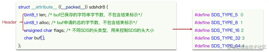Redis是C语言实现的,其中SDS是一个结构体,源码如下