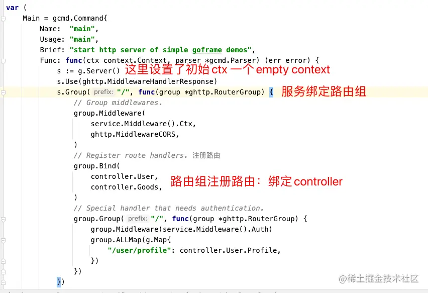 ctx context.Context上下文,Server组件会自动从请求中获取并传递给接口方法,声明并初始化了context初始值为context.Background() - 可以通过GetCtx、SetCtx、GetCtxVar、SetCtxVar这些方法轻松的为context赋值和取值