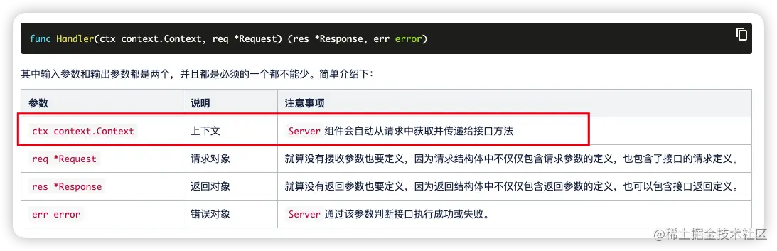 先说结论:关于ctx context.Context上下文,Server组件会自动从请求中获取并传递给接口方法。