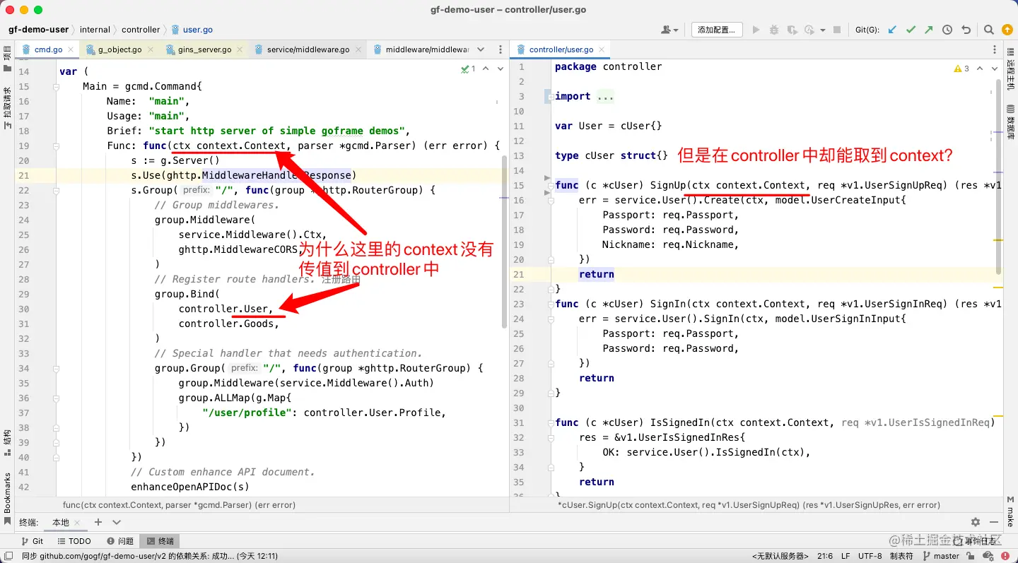 在gofame框架的demo案例中,如下图所示: