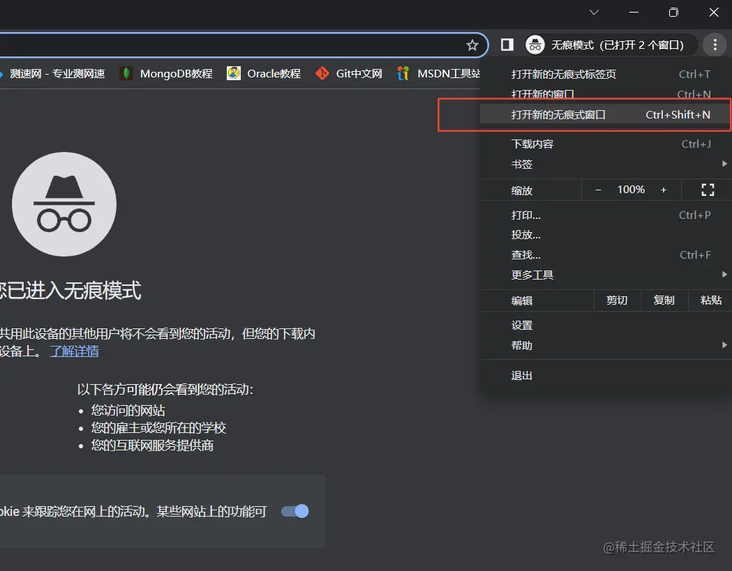 打开浏览器无痕访问 ,也可以使用快捷键Shift+Ctrl+N