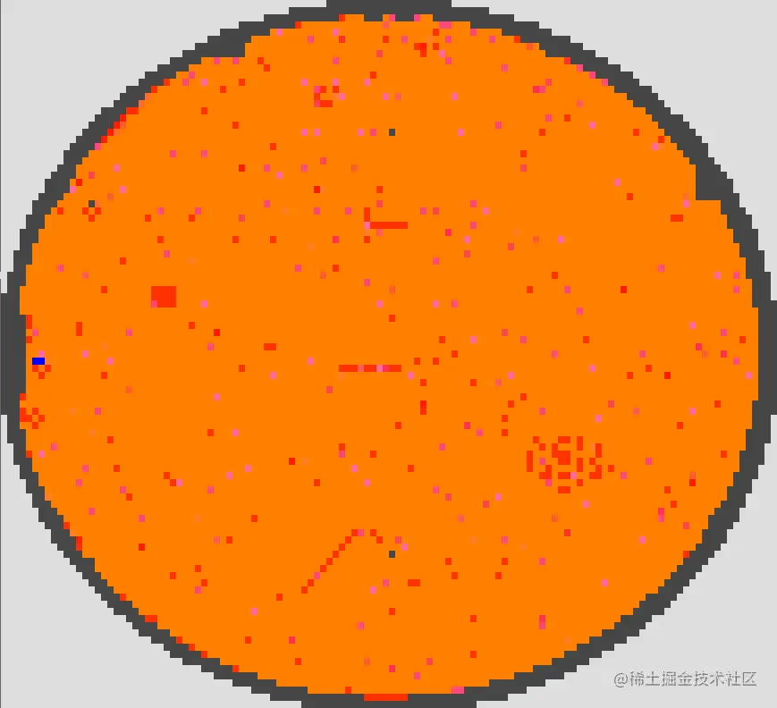 半导体晶圆作为集成电路的载体,在制造过程中需要反复经过复杂的薄膜、光刻、刻蚀等工序。而这些制造过程中工序的异常会导致晶圆缺陷的产生。在晶圆质检中,利用电学测试设备对晶圆片上的每颗晶粒进行电性测试,可得到用于描述晶圆缺陷状态的晶圆图谱,如下图所示。