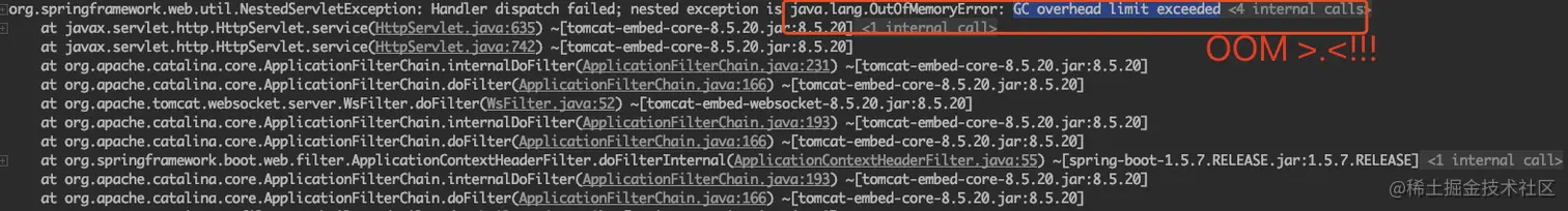 - 啪,然后就OOM,超出了GC开销限制。(程序猿的快乐没了