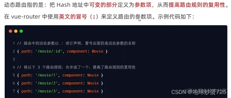 在hash地址中,/后面的参数项叫做路径参数,在路由参数对象中,需要this.$router.params来访问参数路径。