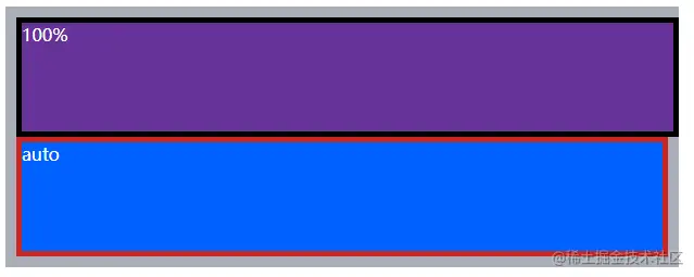 好的,确实印证了我的猜想,设置100%的盒子只有content的宽度等于父节点的宽度,而设置auto的是content+border等于父节点宽度