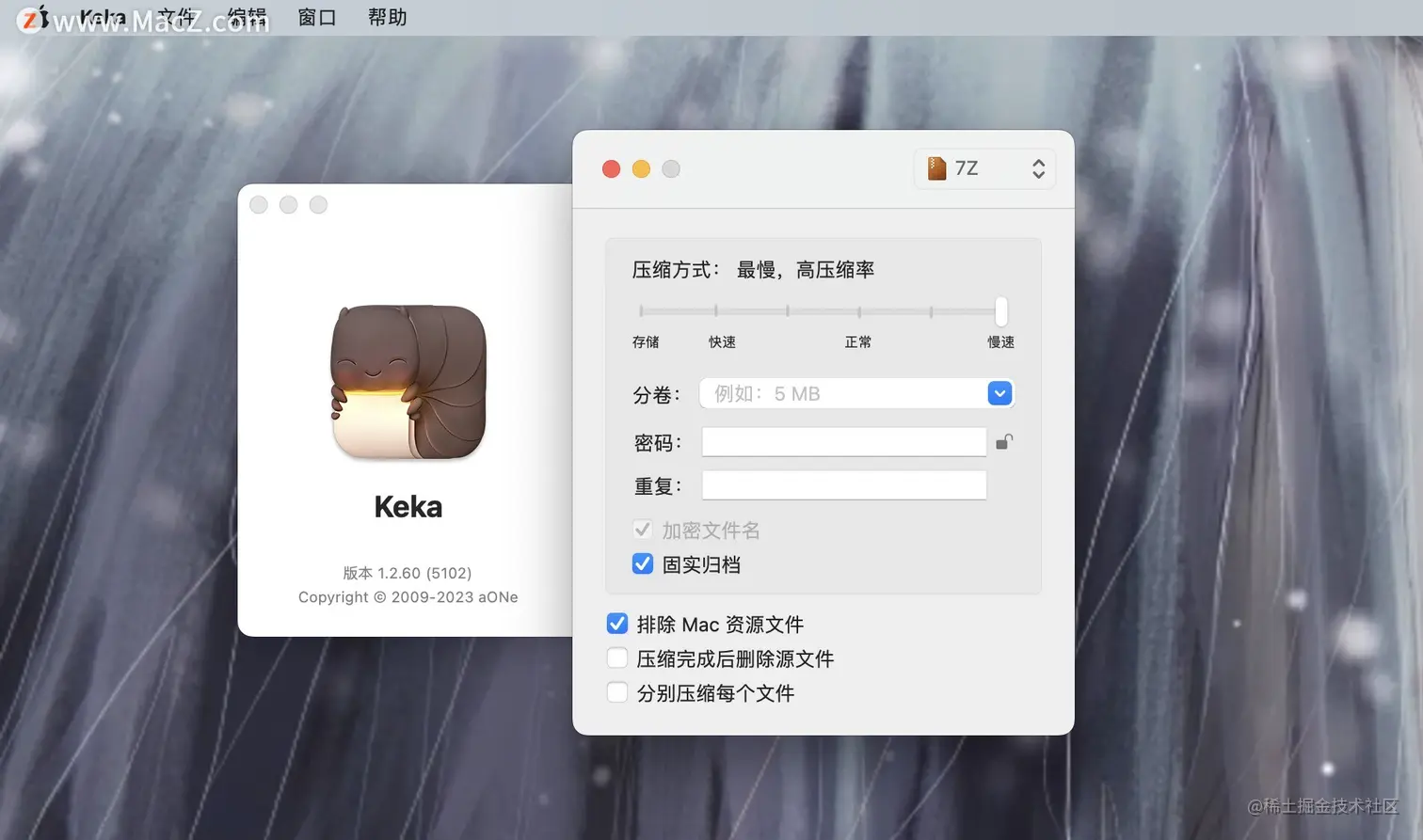 Mac哪款压缩解压工具好用呢?Keka for Mac是一款Mac上优秀的压缩解压缩工具,支持中文界面,支持压缩7Z, ZIP, TAR, GZIP, BZIP2等格式,解压缩7Z, ZIP, RAR, TAR, GZIP, BZIP2等格式,支持分卷和加密压缩,默认情况下,Keka会将档案放在与源文件相同的文件夹中,但通过Preferences窗口可以定义一个自定义输出位置,也就是选择偏好设置,或选择在每种情况下提示。
