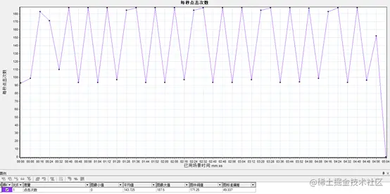 - 每秒点击次数:运行压测场景过程中虚拟用户每秒向服务器提交的http请求数。