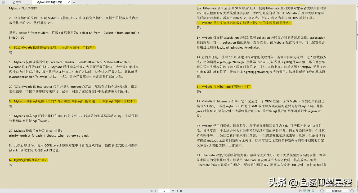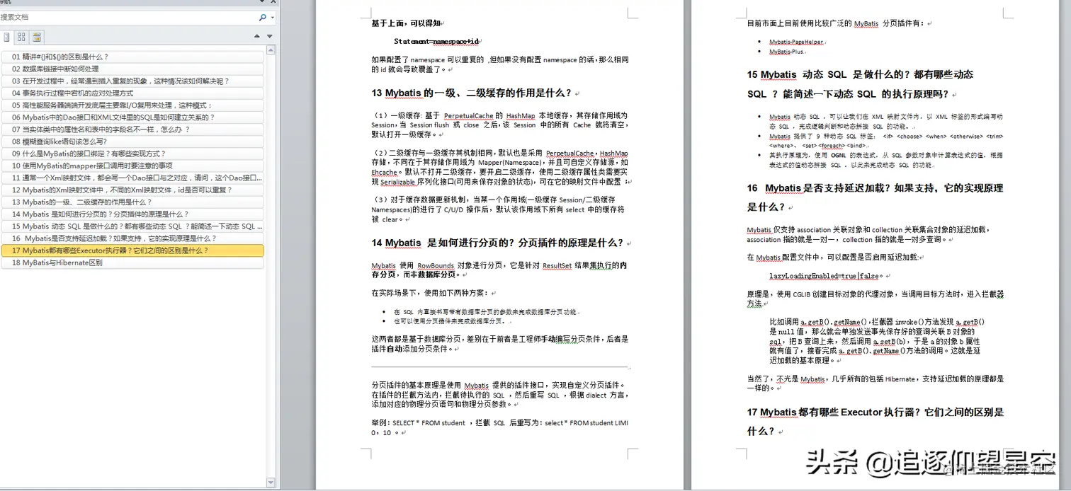 篇幅有限,完整版18个Mybatis高频知识点如下所示: