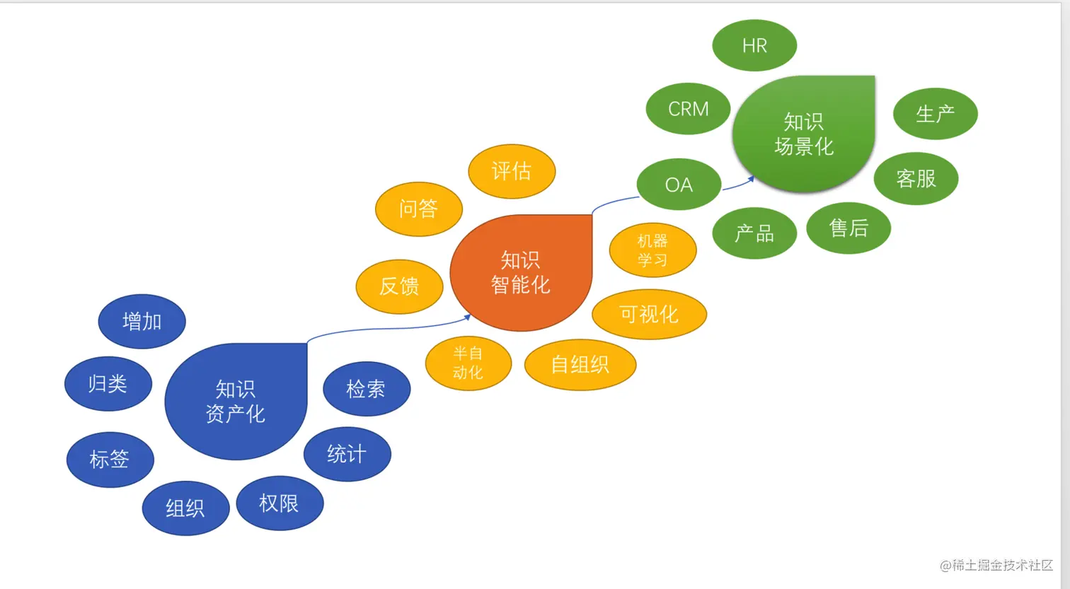 经典的知识管理框架中,最核心的三要素是人员、流程和技术。应以人为本,以业务为导向,流程为纲,知识为体,结合具体业务及工作,转化为一个一个具体的知识应用场景。