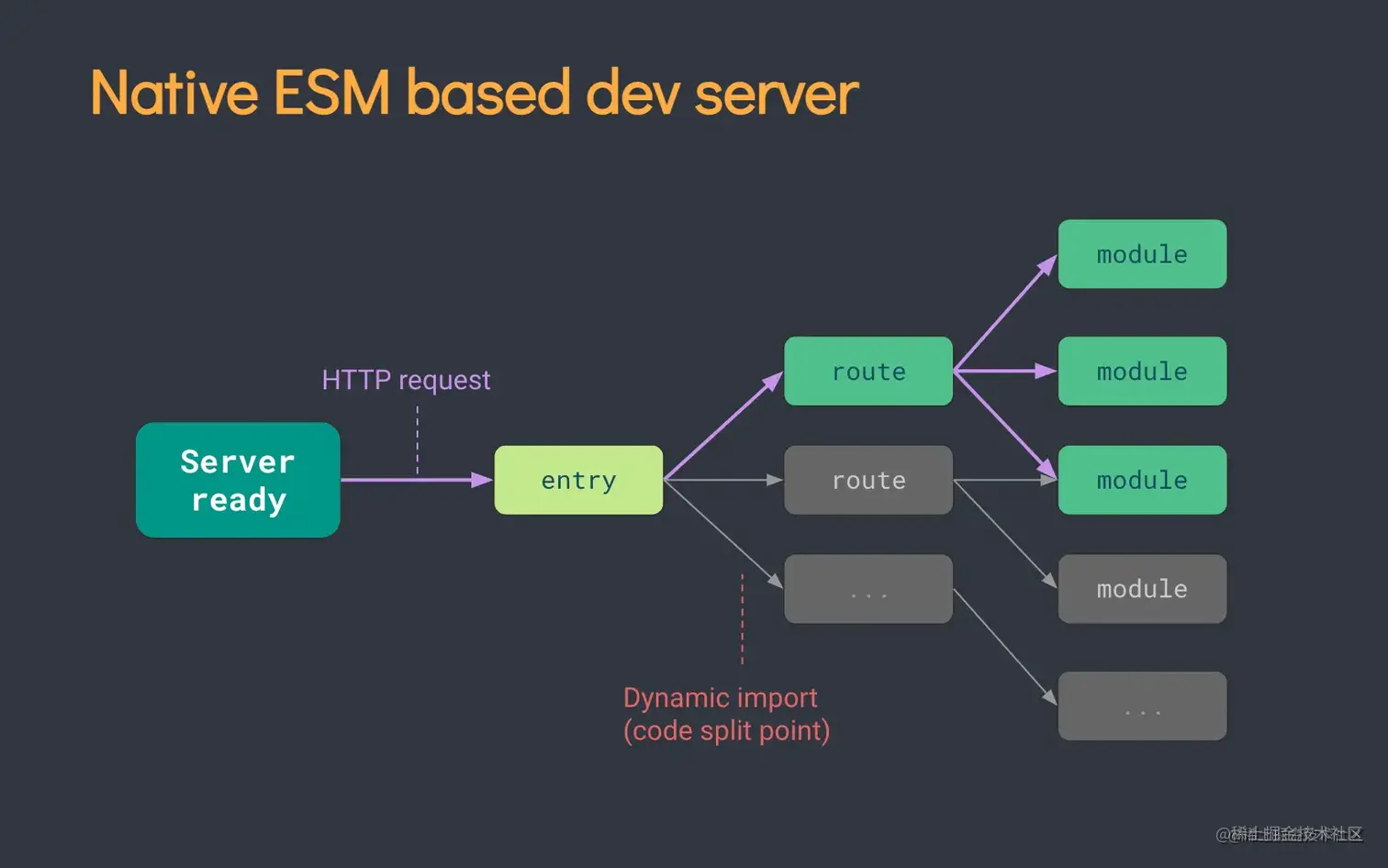 - Dev Server:原生 ES Modules;