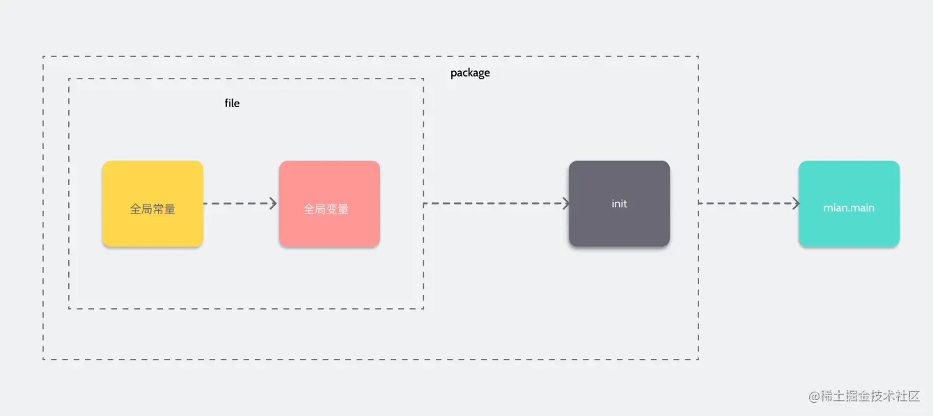 - 整体上的顺序是全局常量->全局变量->init函数->main函数。