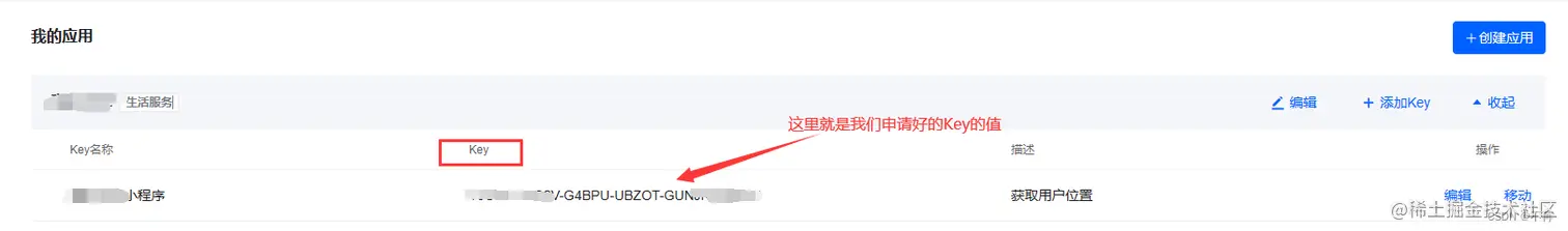 2、复制申请好的Key值等待使用