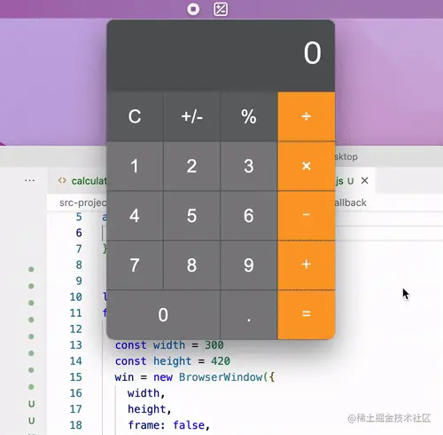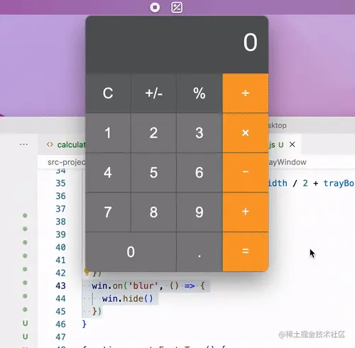 Electron 默认的托盘(Tray)提供了菜单能力,但是并不能让用户自定义窗口视图,有很大的局限性。我们经常看到 Mac 上很多原生应用,点击托盘之后可以弹出下拉窗口,那 Electron 能不能实现这个呢?其实是可以的,今天就带领大家一起实现一个「桌面计算器」。