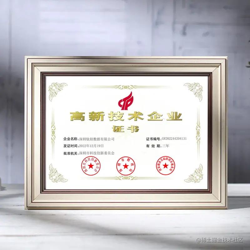 与此同时,Tapdata 凭借出色的技术创新实力,以及自主可控的核心知识产权再获官方认可,顺利通过深圳市“高新技术企业”认证并取得证书,正式跻身高新技术企业行列,开启高质量发展新篇章。