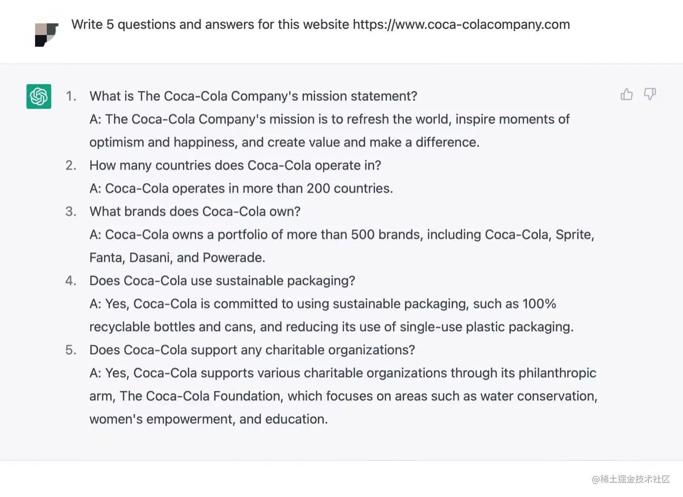 5.知识库创建。一些面对终端C的企业,知识库的创建是刚需。仅需对chatGPT提出特定主题的问题,便可以得出一个不错的回复,这将大大缩短知识库沉淀内容至正式对内、外应用的周期。
