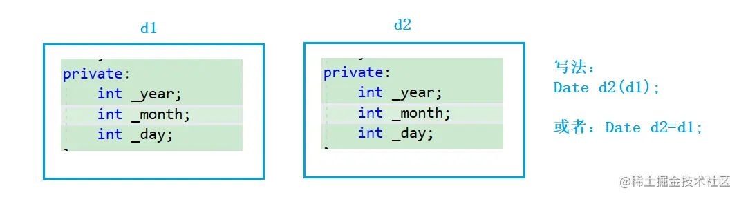 Date d2(d1);//或者:Date d2=d1;