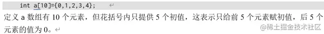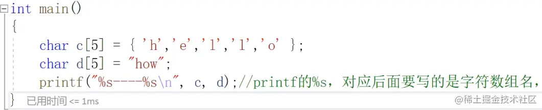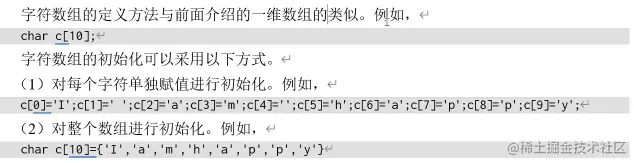 但工作中一般不用以上两种初始化方式,因为字符数组一般用来存取字符串。通常采用的初始化方式是 char c[10]="hello"。