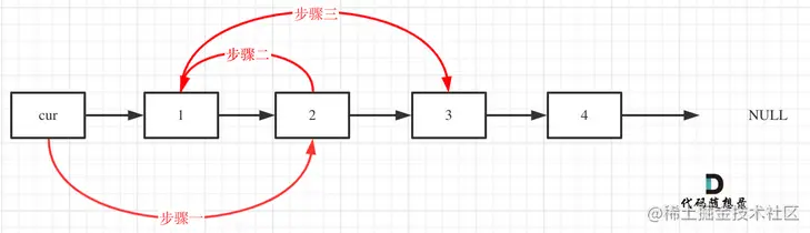- 遍历终止条件:cur后面必须有两个结点,少于两个结点没办法交换,循环结束,无论结点数是奇数还是偶数