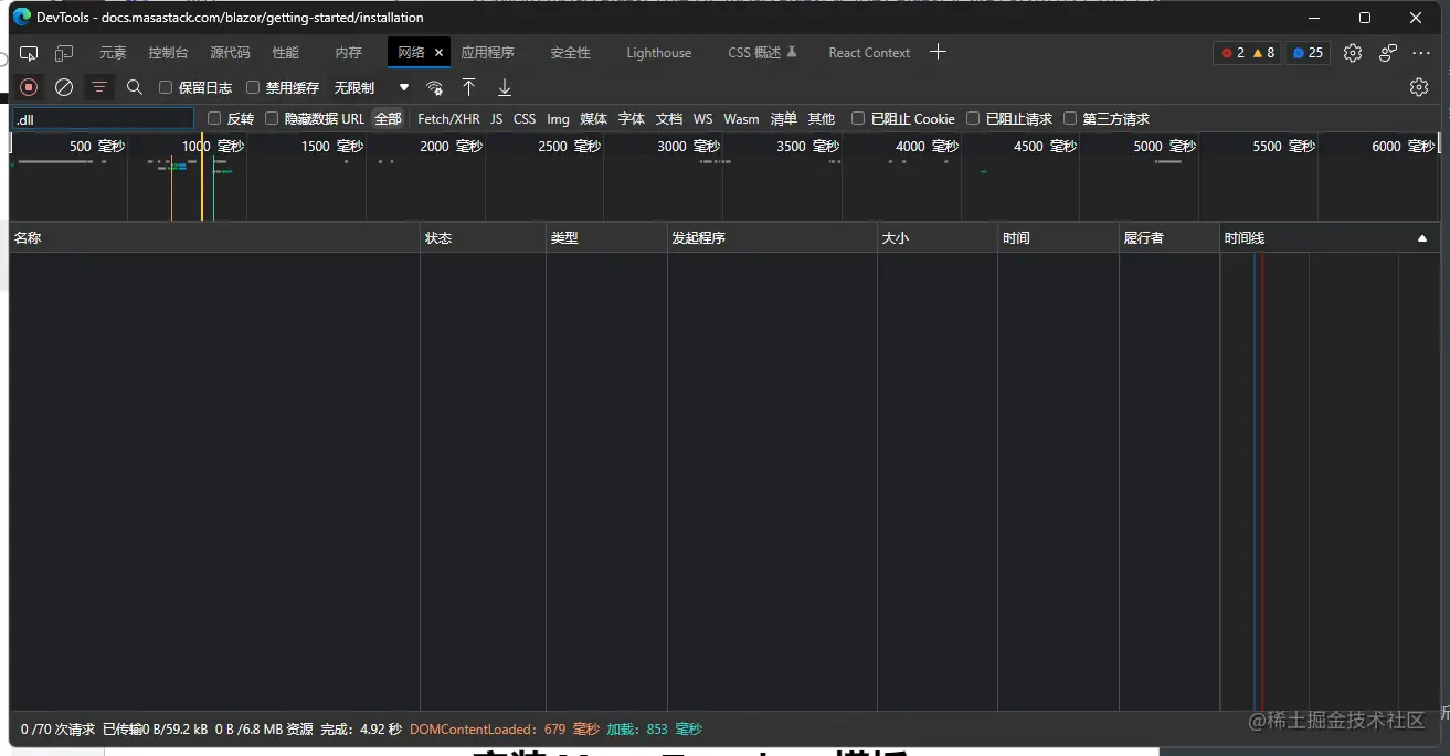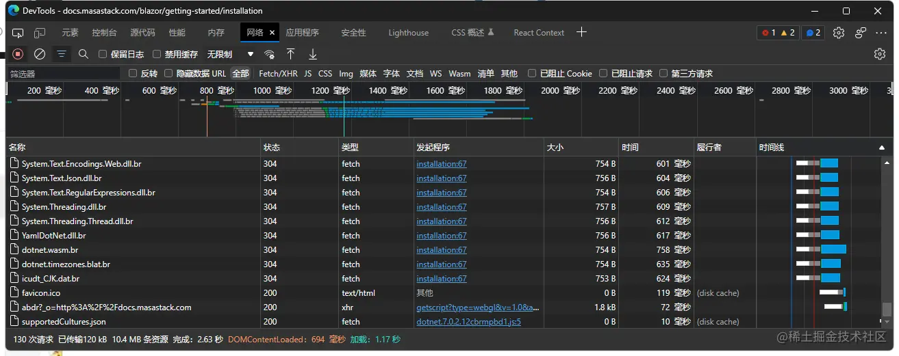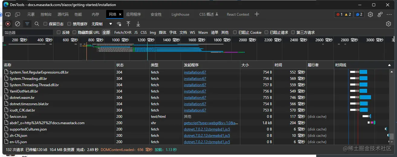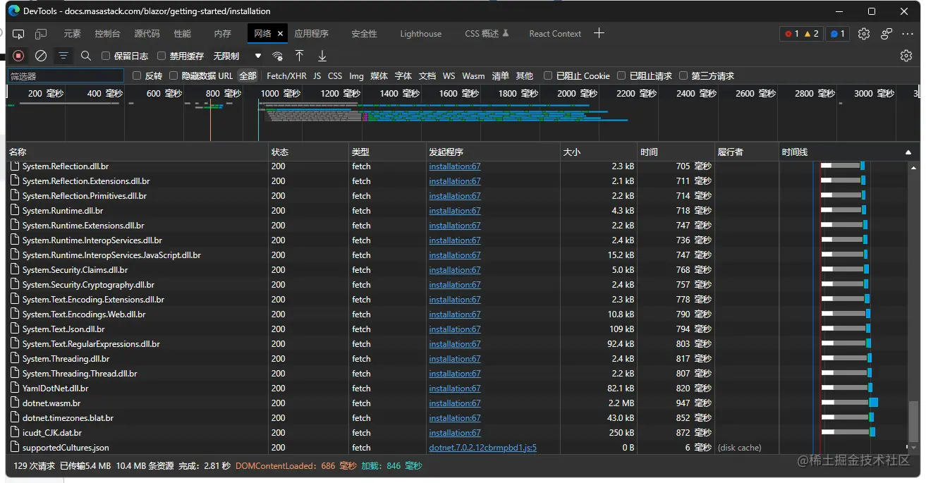 继续测试HTTPS ,打开 docs.masastack.com/blazor/gett… ,我们可以看到第一次加载的程序集