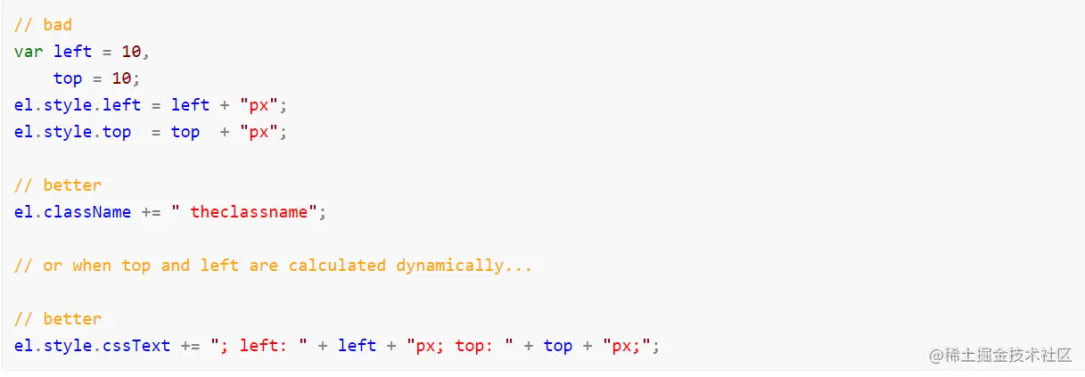如果你一定要改变页面内组件的样式,最好将样式应用在尽可能低层次的元素上,这样能避免掉不必要的回流操作。