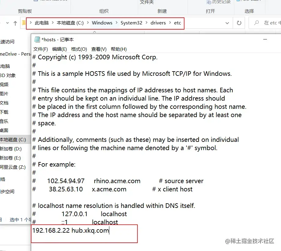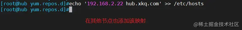 echo '192.168.2.22 hub.xkq.com' >> /etc/hosts