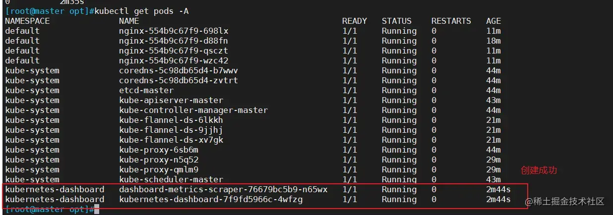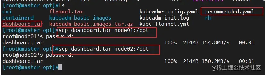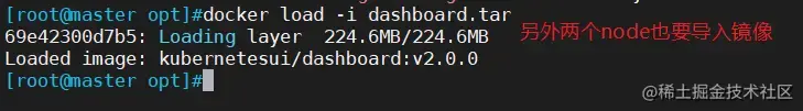 //所有节点上传dashboard镜像 dashboard.tar 到 /opt 目录,master节点上传kubernetes-dashboard.yaml文件