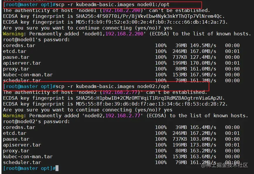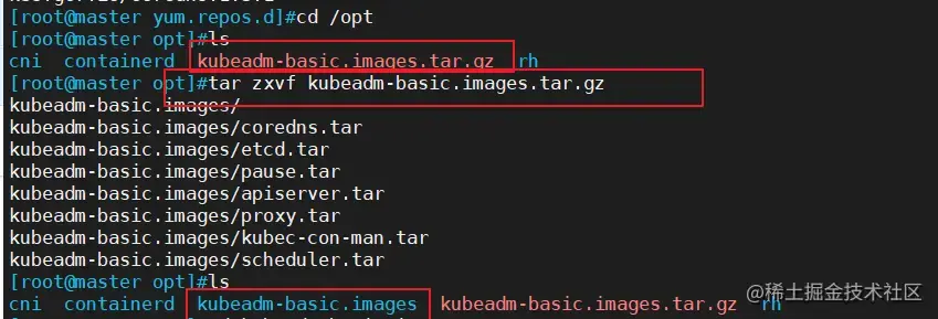 //在 master 节点上传 kubeadm-basic.images.tar.gz 压缩包至 /opt 目录