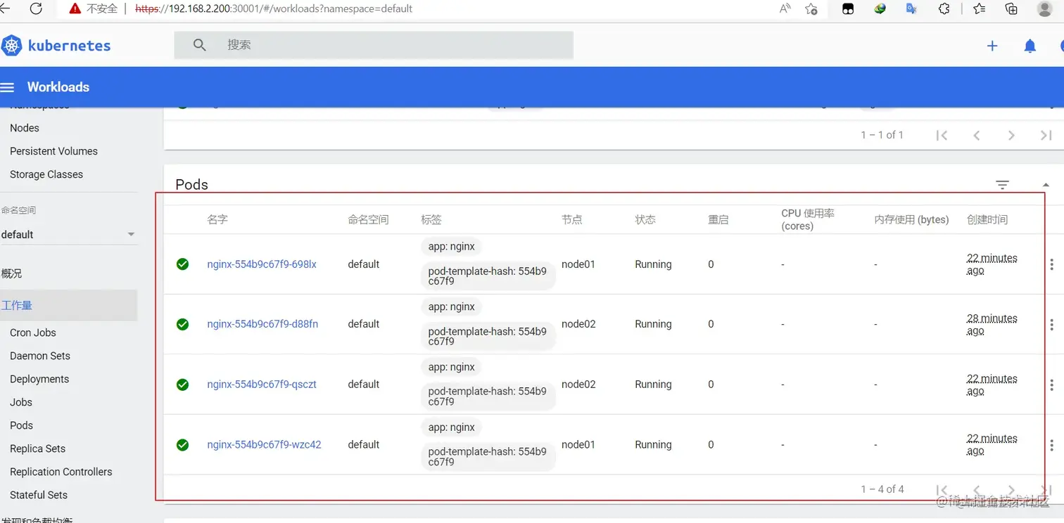 https://192.168.2.200:30001/ #使用Node1或者node2访问